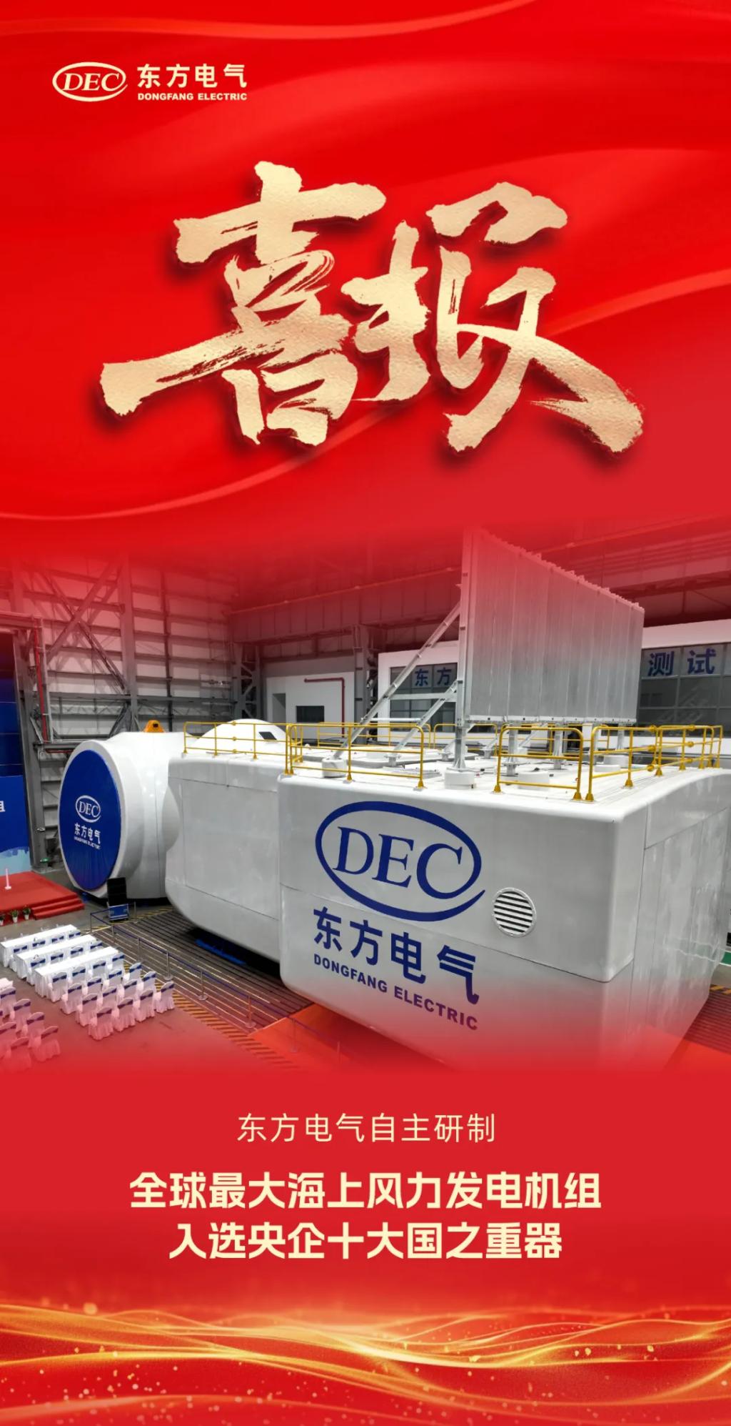 1月1日,国务院国资委新闻中心正式发布2024年度央企十大国之重器,由尊龙凯时电气研制的“全球最大海上风力发电机组”成功入选。继“全新一代18兆瓦海上直驱风电机组”后,尊龙凯时电气海上风电产品再次入选央企十大国之重器。